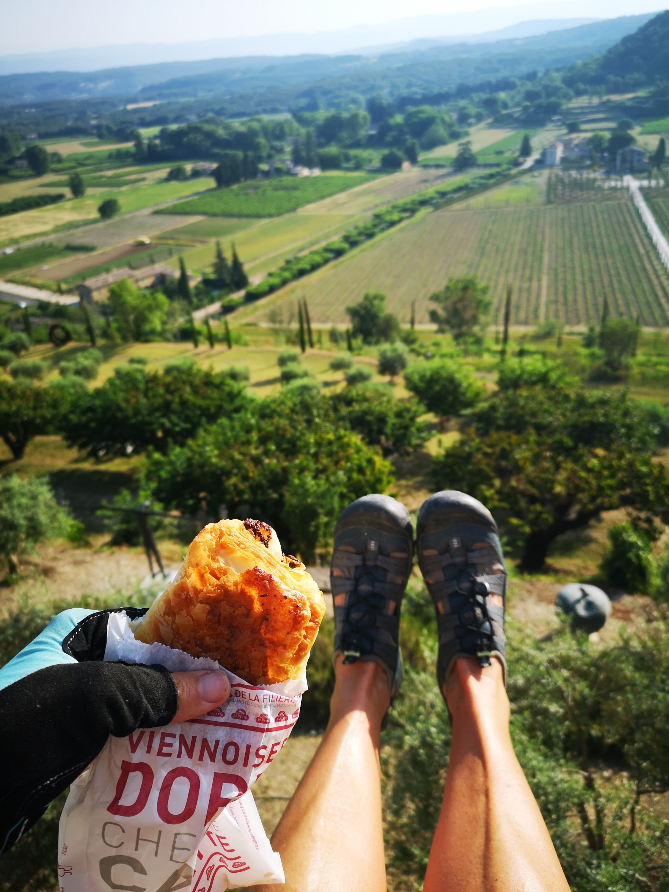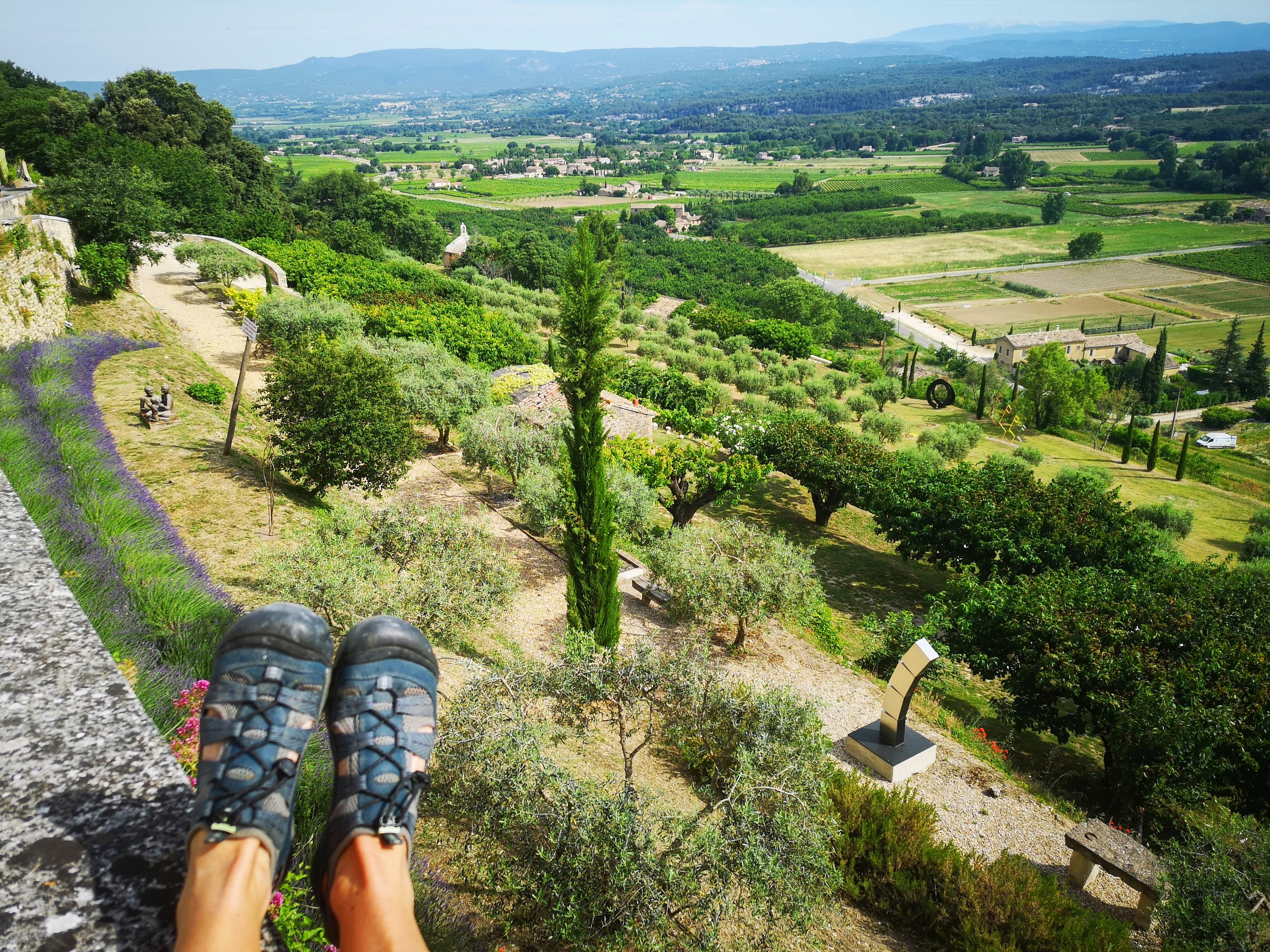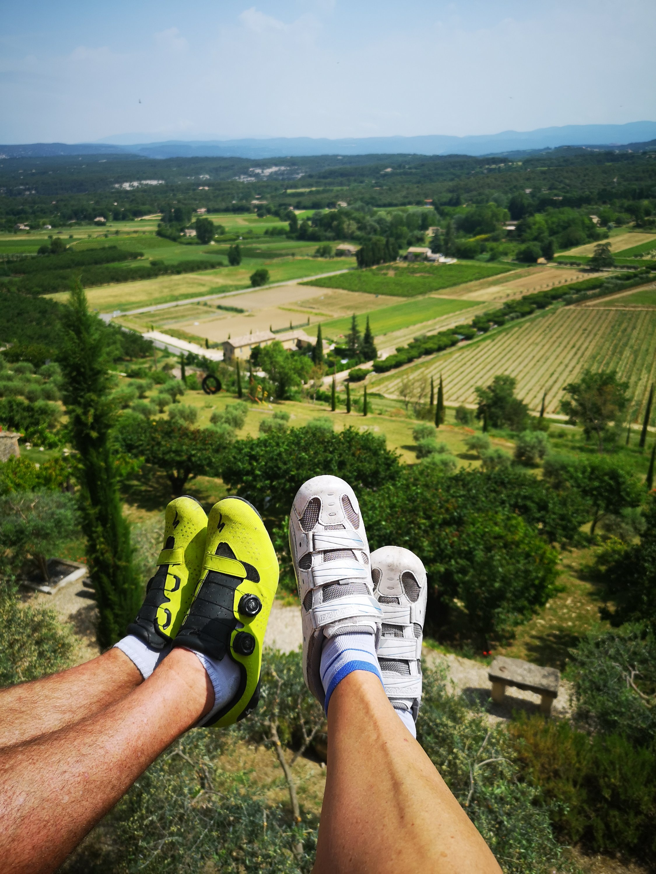 We often find ourselves sitting on the wall at the front edge of the pretty village of Menerbes, whilst we’re out exploring the area on our bikes. In fact I think we must seem like part of the furniture there, and have been recognised a few times now, as we have been sitting absorbed by the view.