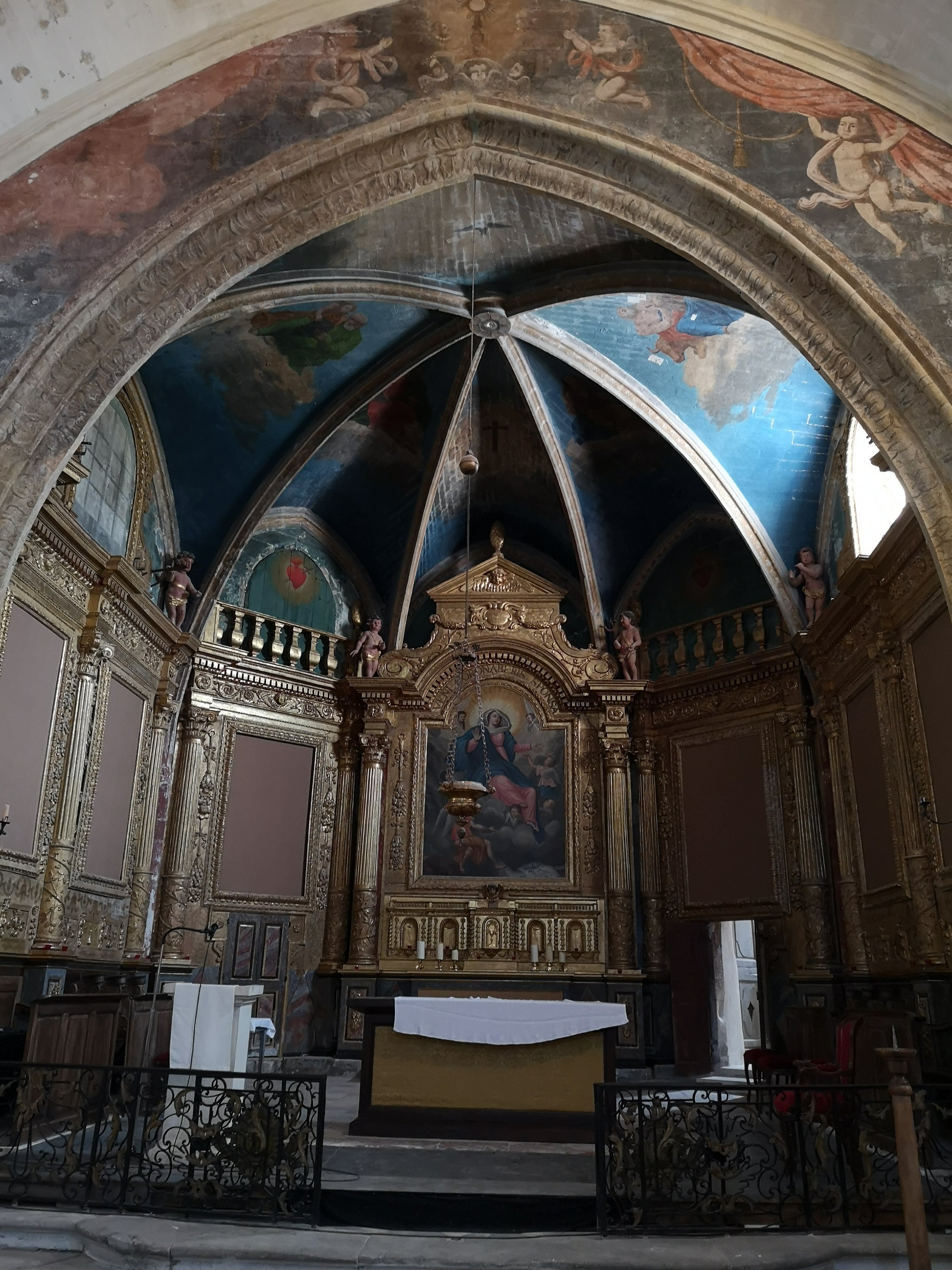 In a side alcove is also an incredible marble altar which arrived on a cart from Avignon, although where from exactly, seems unclear. The effort that it must have taken to get the altar to Menerbes is hard to imagine, even a marble sink or pillar is hard to lift, so I really cannot think how they managed to move this, even in pieces, on a cart .