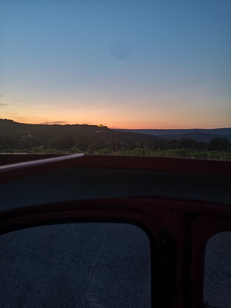 As we headed home in Fifi, with her roof rolled back, watching the sunset colouring the sky beyond Lacoste, I went to get my phone from my pocket and realised it wasn’t there, checking the seat around me just to make sure it hadn’t slipped out. No sign of it, so I sat back thinking I must have put it in my bag, and thought nothing more of it.