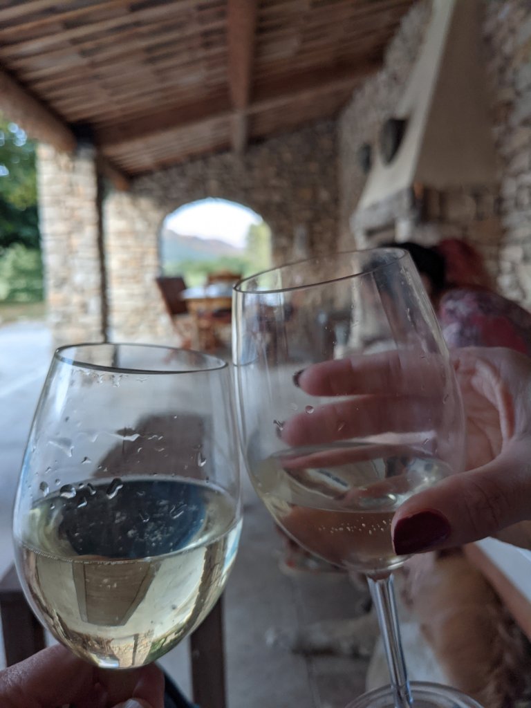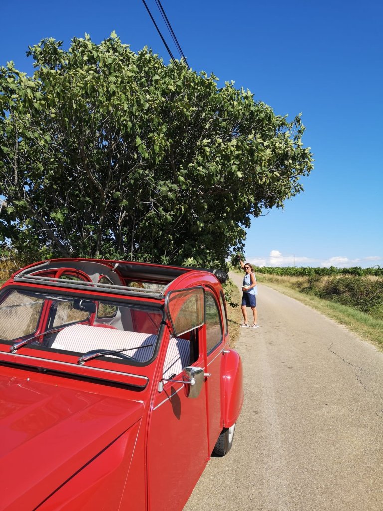 We got quite acrobatic in our efforts at picking, scrambling up and down the bank to make sure we filled the bowl, before hopping back into Fifi and continuing on to Oppede, where we spent a delightful few hours chatting over drinks.