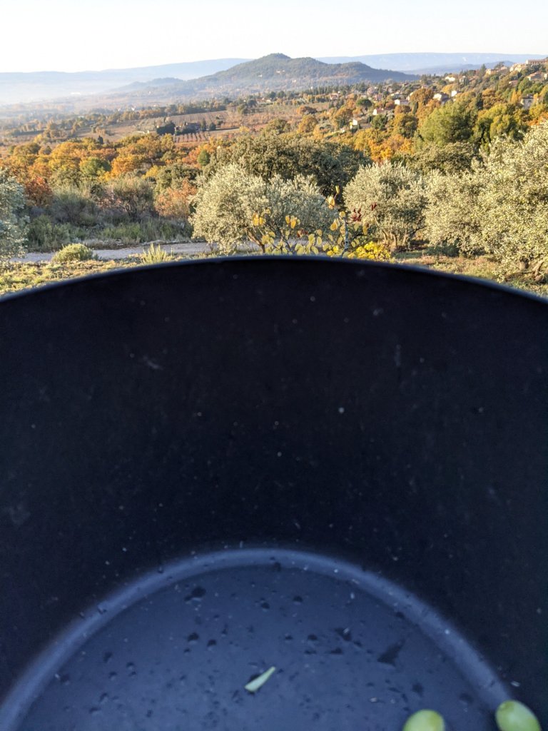The chiming of the church clock in the village helped mark the passing hours and just after 4, as the sun started to dip, we finally called it a day, as we needed to get the olives to the Mill in nearby Rustrel, and as it had been such a beautiful few days, it was bound to be busy. The Rustrel Olive Mill
