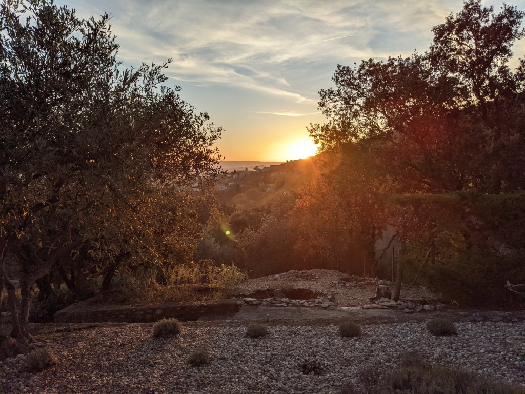 I love the way that their silvery-green leaves catch the light, and how the regimented rows of the local olive groves, mirror the purple stripes of summer lavender fields. In spring, the branches froth with yellow, delicate flowers, which this year, were covered with bees, adding a gentle buzz to our morning walks and cycle-rides.