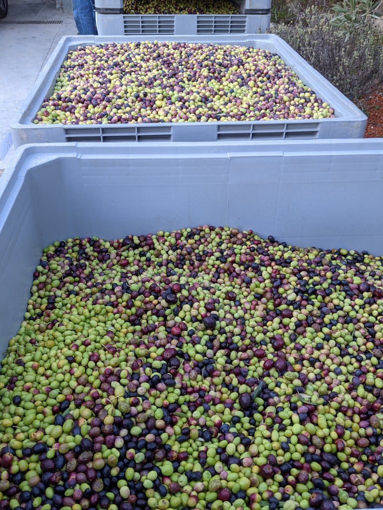 It was a joy to watch, and to be a part of this wonderful aspect of provencal life. The bustle and babble at the Mill was delightful, and the slightly peppery, slightly zesty scent of the fruit was heavy in the air, as the open containers were piled up outside.