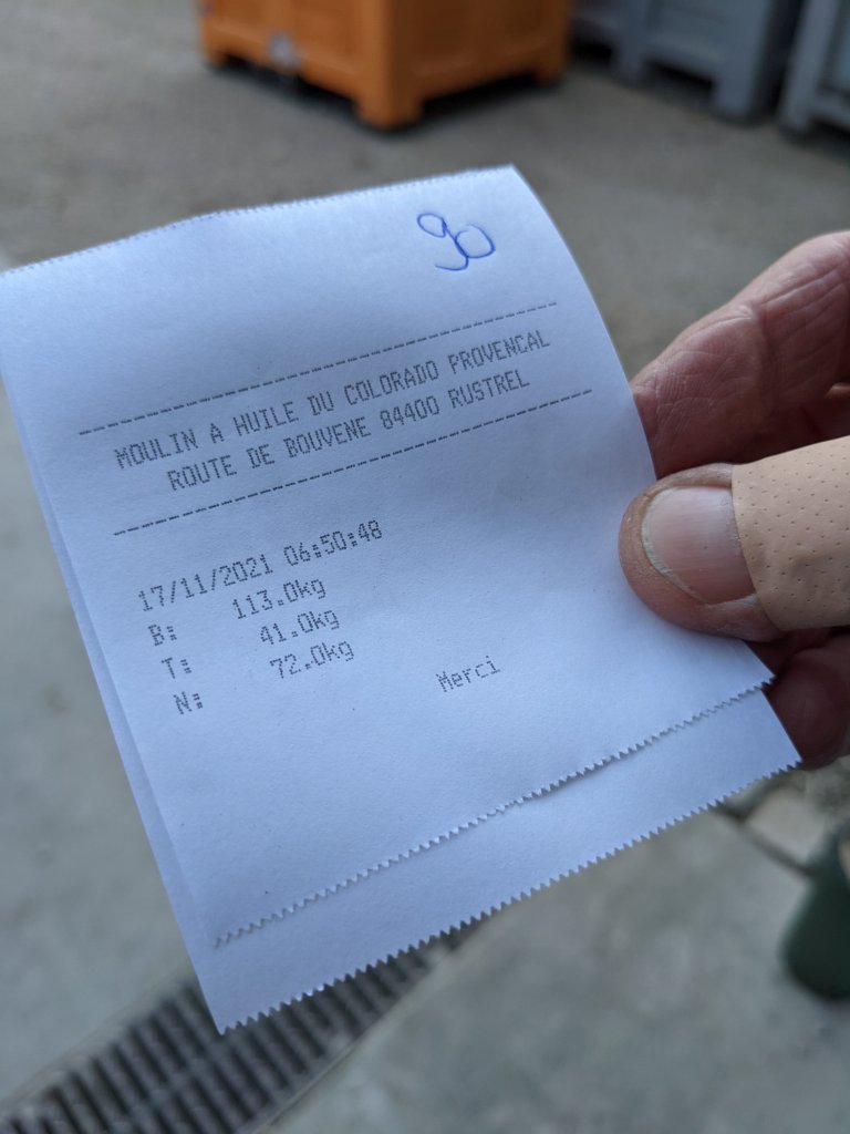 It was exceedingly well-organised chaos, with a chap indicating for the cars to reverse, in turn, into the open bay, where the olives were tipped into a huge container on a set of scales, which were zero’d between each customer.