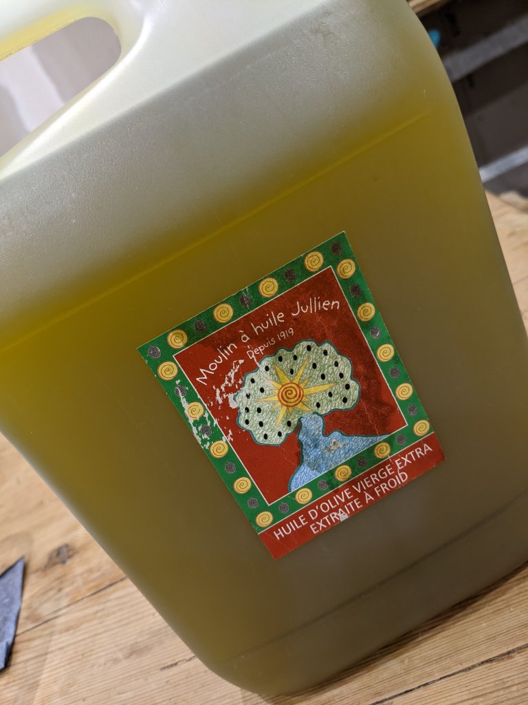 There are mills all around us, in fact several are within a few kilometres drive, but Rustrel is the closest and it is always nice to support small, friendly, local businesses. There used to be many more, but the Olive industry here was decimated in February 1956, when after a beautiful day, reaching 21 degrees C, there was a vicious frost overnight, with temperatures falling to minus 17 degrees C. The sap, which had started to rise in the late winter warmth, froze in the trees, cracking the trunks and devastating the industry that had taken place here since Roman times.