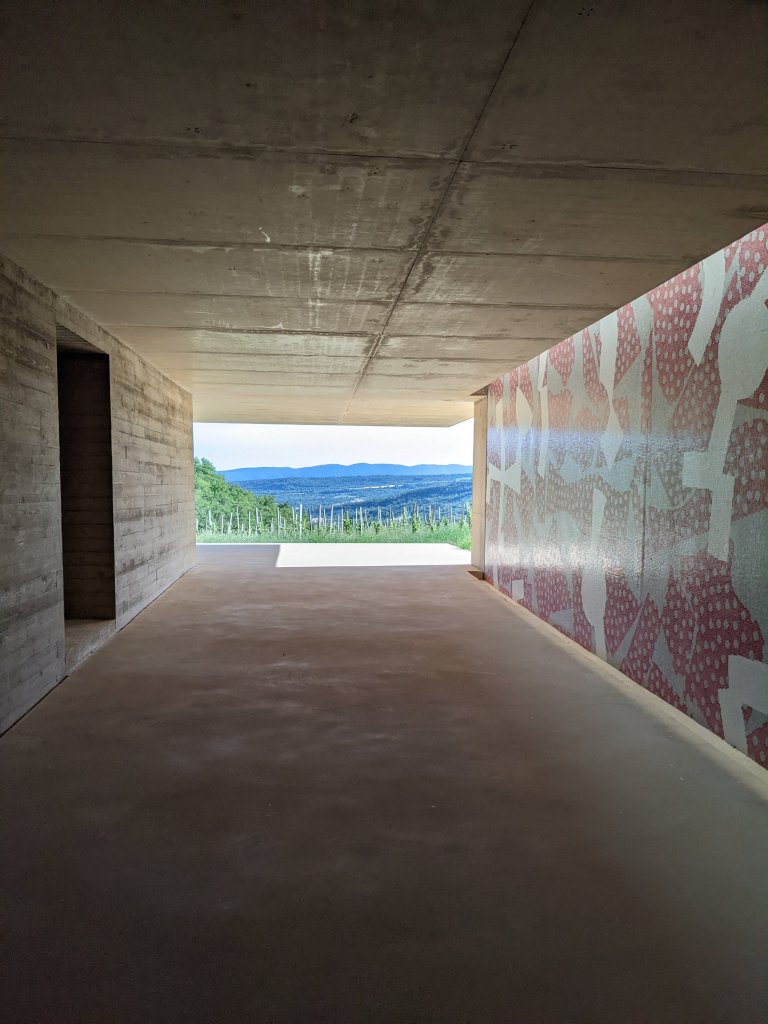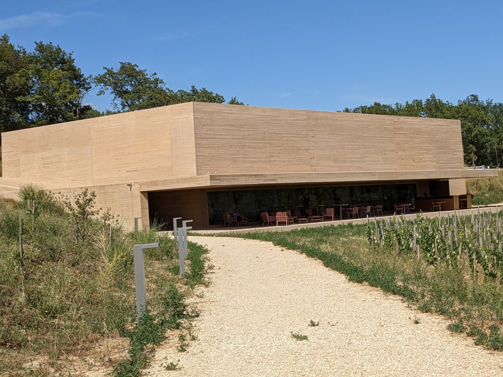 But back to the wine, which was what we were there to see and the incredible building that houses the state of the art winery. If I’m honest, we saw it being built and it brought to mind some of the big WW2 museums near the D-Day Landing beaches, but as it was finished, it seemed to disappear a bit into the landscape and seeing the building up-close I can see why.