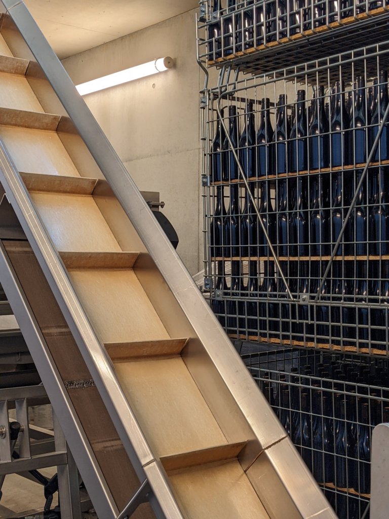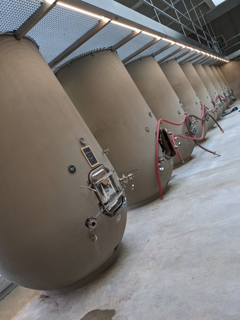 Inside the building though, machinery is very much required and we were introduced to the machines and the way the building has been designed to make the most of gravity, minimising the need for pumping systems to be needed to move grapes, must and liquid from one part of the building to another. Rather ingenious really.
