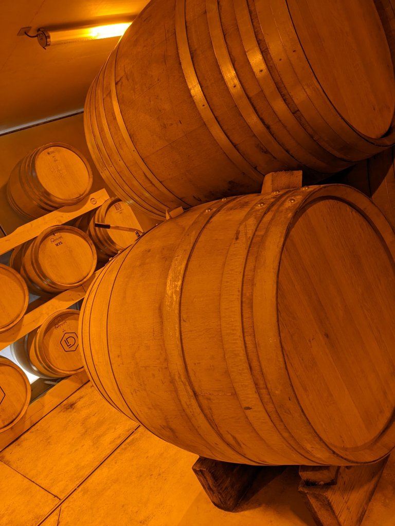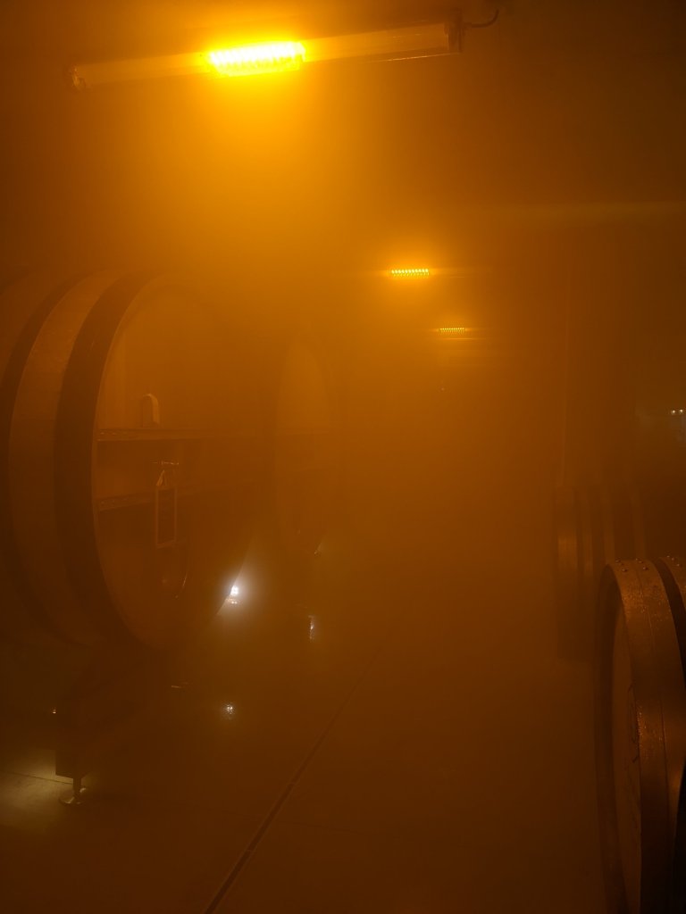 This is a cool space in more ways than one, thanks to the carefully maintained temperature and the mist of water, to ensure the wooden barrels don’t dry out, which would not only ruin the contents, but would probably lead to them leaking onto the floor too….