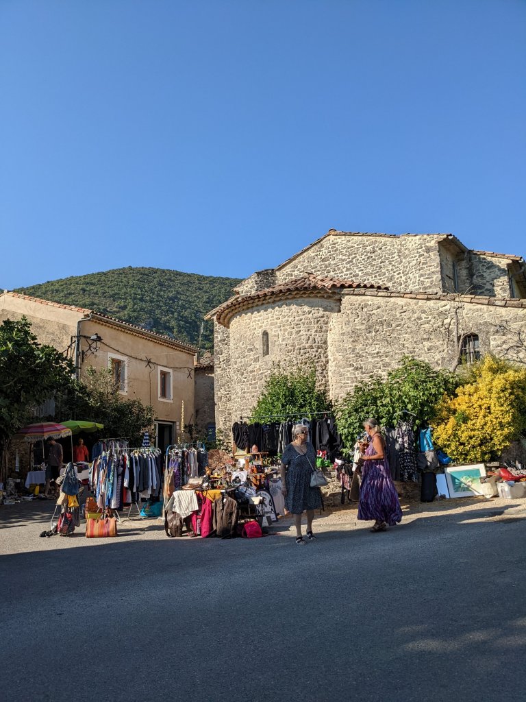 Today though, I fancied a morning off the bike and as I remembered seeing signs advertising a Vide Grenier, in the pretty village of Castellet, on one of my rides during the week, I thought I would head up there first thing, before pottering over to Reillanne, just the far side of Cereste for an amble around its lovely Sunday morning market.