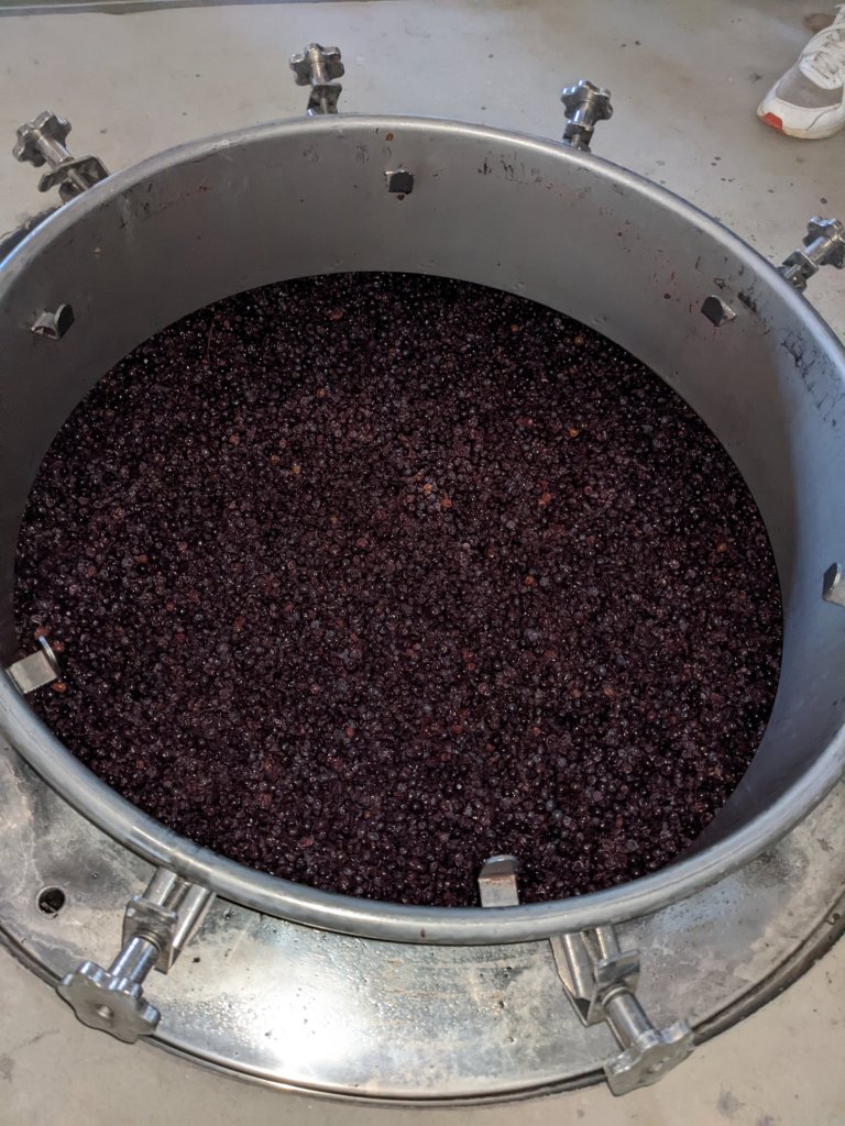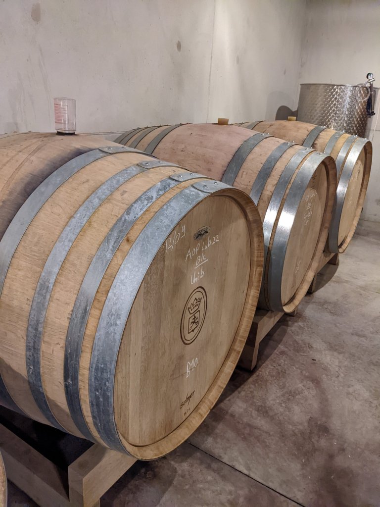 Guillaume showed us around the new winery, which opened 12 months ago, that is home to the different vats used in the wine-making process. To one side of the entrance are concrete vats, currently filled to the brim with red grapes, at the start of the production of the chateau’s red wines. and as the lid was lifted, the room filled with the heady, rich scent of fruit….