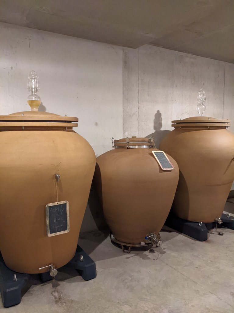 Below this was a further room filled with oak barrels, where the reds are left to age for 18 months (or longer) and terracotta vessels that looked as if they had been left by the Romans themselves, where the wine was left to age and mature, before being bottled at the perfect moment in the future….