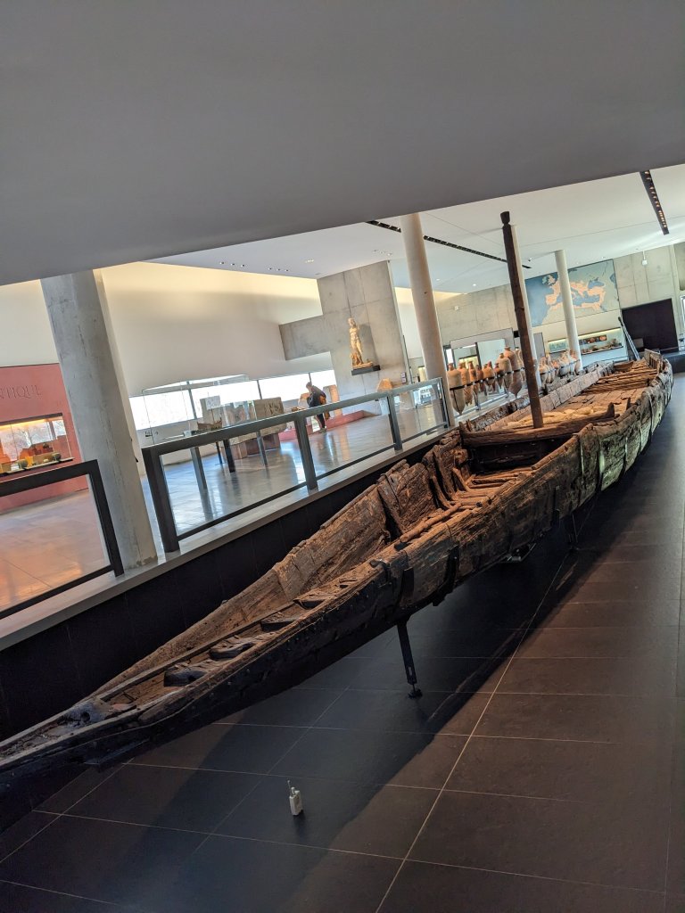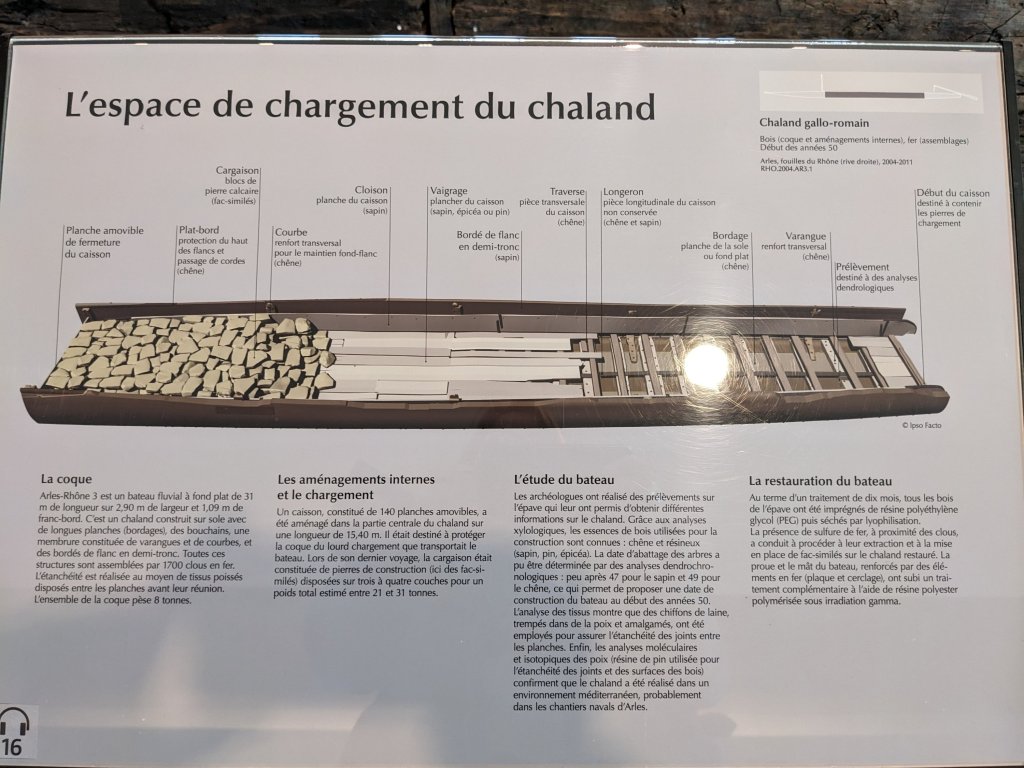 In the car, munching croissants, on the way across, we decided that the first port of call would be a cafe for much-needed coffee, before heading over to the Arles Antiquities Museum to see the Roman Barge, which was recovered from the river in 2004, and after years of restoration is now on display there