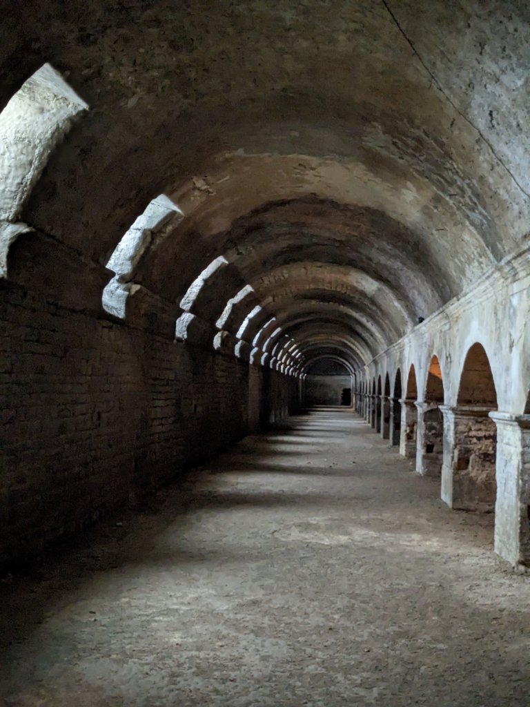 We knew that we wanted to visit the Amphitheatre and started to make our way towards it, but were distracted by a sign for the Cryptoporticus , that was accessed through the grand entrance of The Hotel de Ville. As we had the tickets, we thought that we may as well take a look, as we were passing and found ourselves descending old stone steps that led to a rather beautiful, vaulted underground chamber, made up of double, parallel tunnels that form the shape of a U.