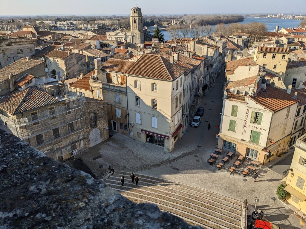 We walked up the steps to the tower, above the entrance, where there are amazing views, across the rooftops of the old city towards the river. I love a roof-scape and could have spent ages here, simply enjoying the view and the colours of the old terracotta pan-tiles glowing in the late-afternoon sun.