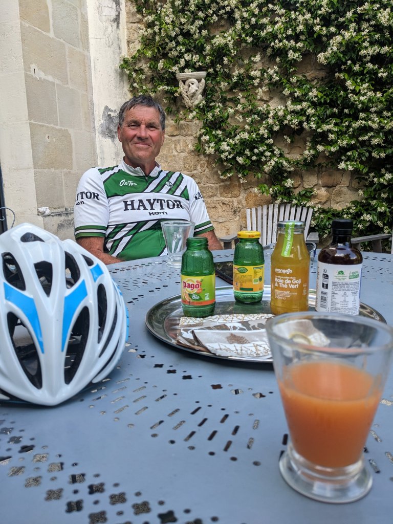 We finally arrived in Pons and found our Chambre D’Hote for the night, a beautiful place, with a peaceful garden and an incredible 13th century, vaulted chapel building, which is where the bikes are safely stored for the night … Certainly the best bike storage we’ve had so far!