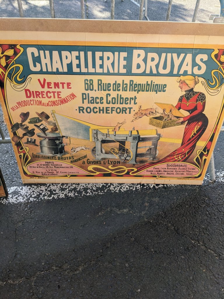 But today’s find that raised our eyebrows was a wonderful old poster advertising Chapellerie Bruyas, a milliners that is still in existence today. The depiction of rabbits happily launching themselves into a machine, emerging as hats, with a rabbit ghost jumping down to the floor is quite disturbing and all I can say is that the lady encouraging the bunnies into the machine would give Cruella DeVille a run for her money. Can you imagine this being considered as acceptable marketing today…