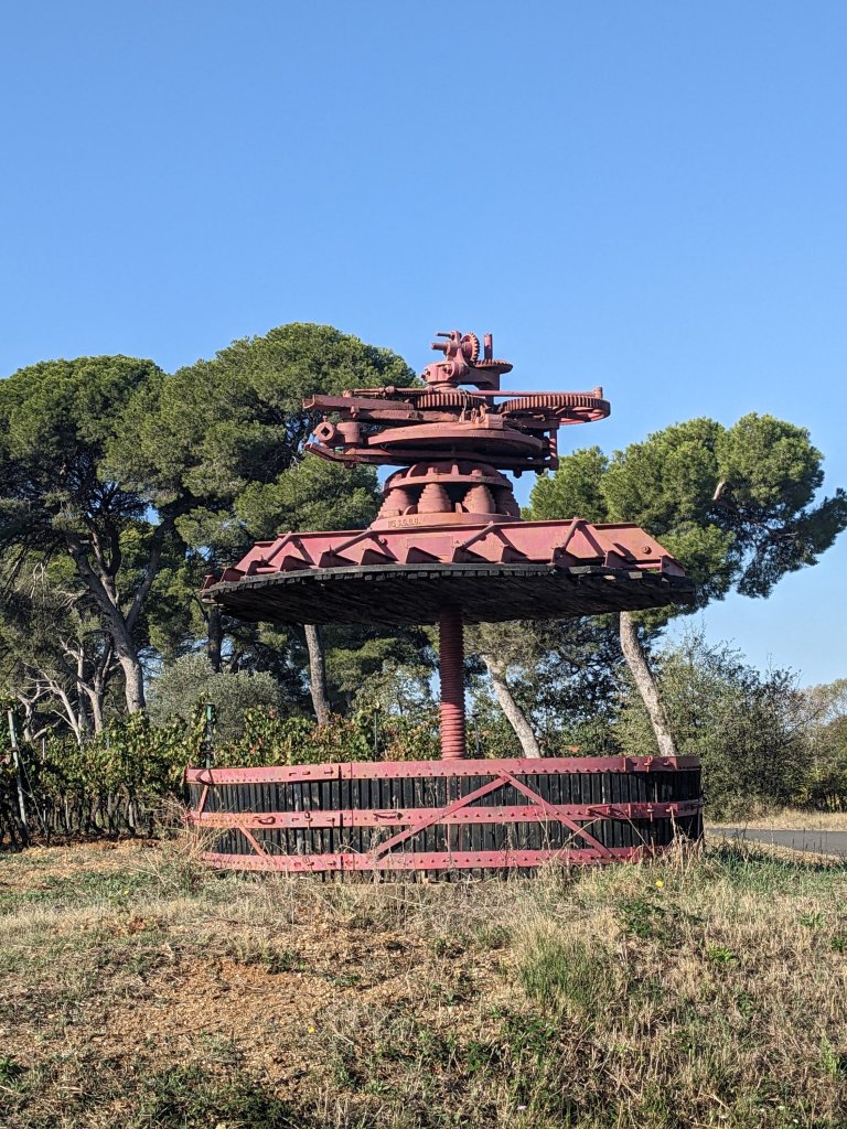 The cycle out, took us along quiet roads, passing through vast vineyards and past huge wineries, where the air was filled with the scent of fermenting grapes. We passed large Domains too, including one with an old press at the entrance.
