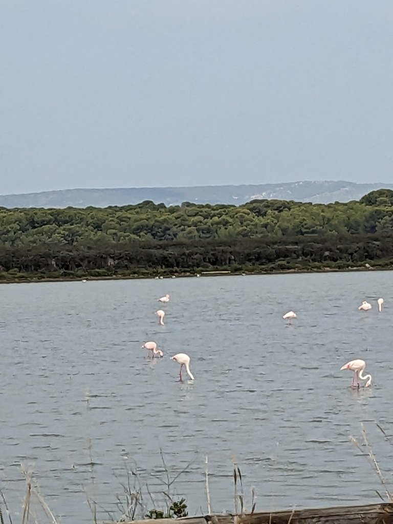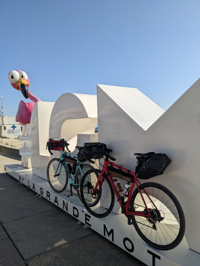 Once on the right path, we made good progress, following the route out through Frontignan towards Palavas along a spit of land, where the protected cycle path runs alongside a busy road. It’s not our favourite sort of cycling, but we needed to make ground and this was helping us get back in the time we had available and most importantly it took us alongside Étangs filled with flamingos.