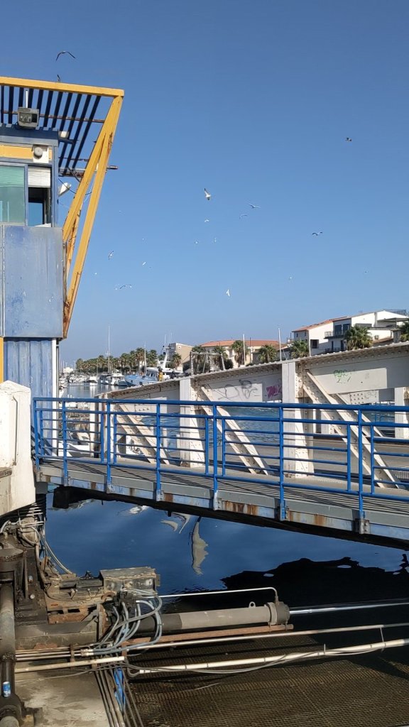Before arriving in La Grau de Roi, just in time to watch the swing bridge open to allow a trawler to pass through.