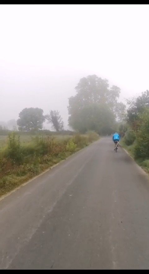 So a new route found, we loaded the bikes, carried them down the three flights of stairs and set off into the gloom. It had been worth that last quick look at the map, as the back road was perfect, slipping under the motorway and taking us through countryside, dripping with moisture, with the mist catching in the trees.