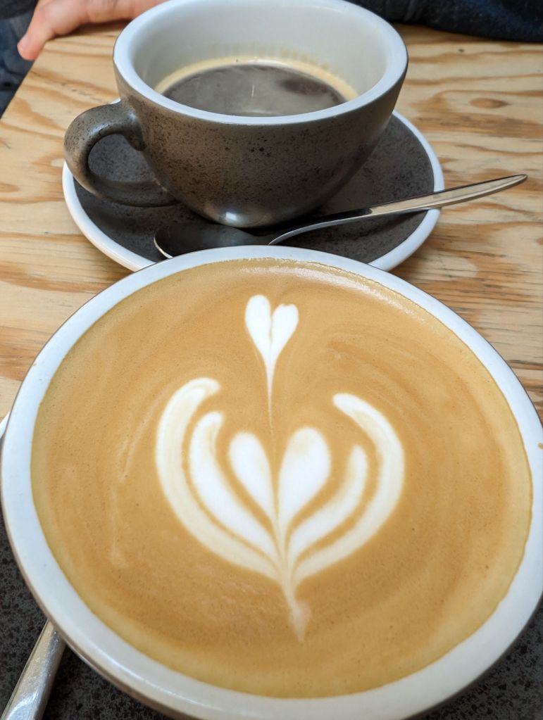 So back together again, we walked out of the station into the pouring rain and dashed through the puddles to a favourite coffee shop ‘Back in Black’, where we gratefully sank into our chairs, ordered coffees and finally started to catch up, whilst our wet hair dropped down our backs.