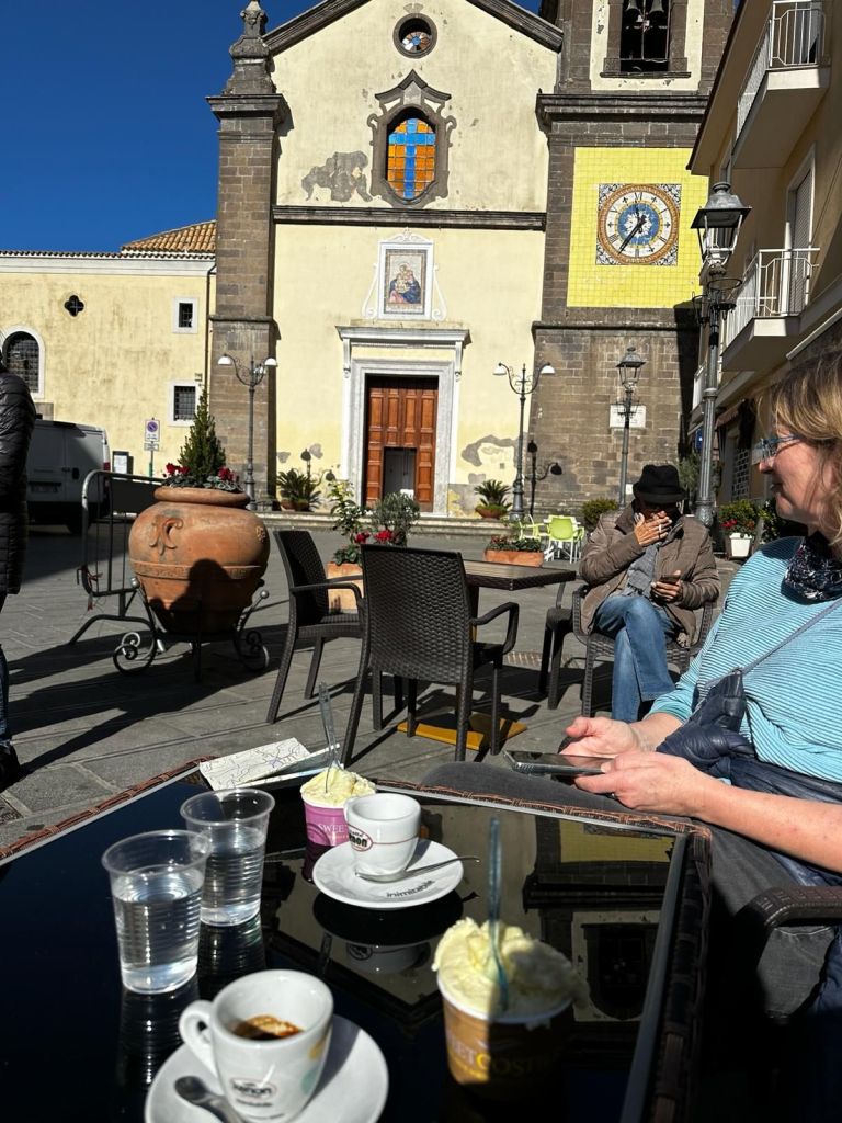 The following morning we woke refreshed and bright, opening the shutters to another cloudless blue sky. We had originally planned to take the train to Pompeii and spend the day exploring the Roman sites there and at Herculaneum. But over coffee, we chatted and decided that they could wait until another time (we will definitely be back) and would look at taking a walk around the area instead.