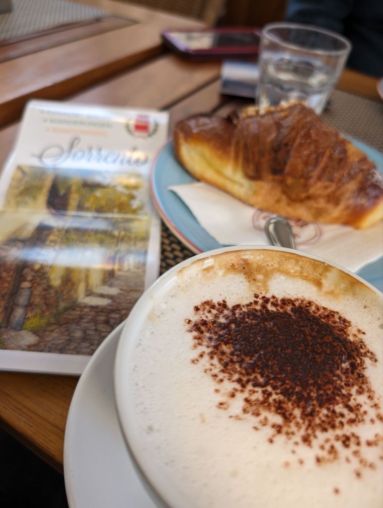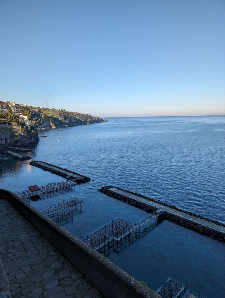 Back in Sorrento, we bought bits for a very late lunch picnic and pottered down to sit on a bench in the port, enjoying the peace and relaxation after our morning’s hike. A little chat from our afternoon view here