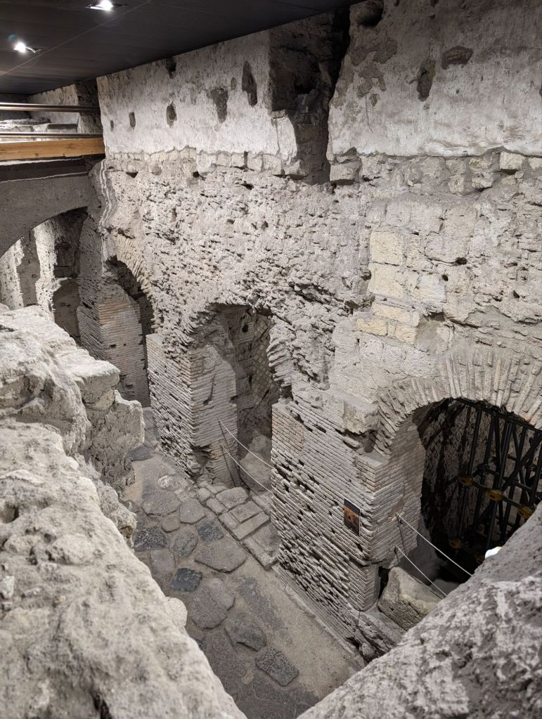 But it was the area under the Basilica and other buildings that fascinated us. The beautifully preserved Roman market, city treasury and workshops. It was a collection of beautifully preserved Roman vaulted buildings, and helped us understand what was above us, a little more.