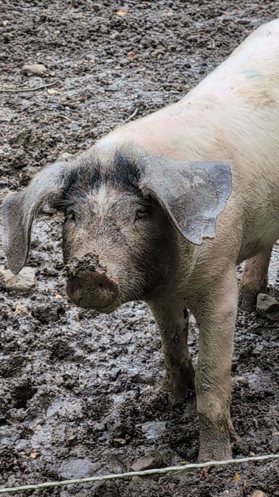 Within minutes, we were off on trails through woodland, passing 2 very happy pigs, who had clearly had a very wonderful time rootling over a fenced-off paddock in the forest. Once they smelt us, they came running over to the fence to say hello, probably in the hope that we may have food, only to be disappointed when we showed up empty-handed. But we still had a nice chat with them, before moving on.