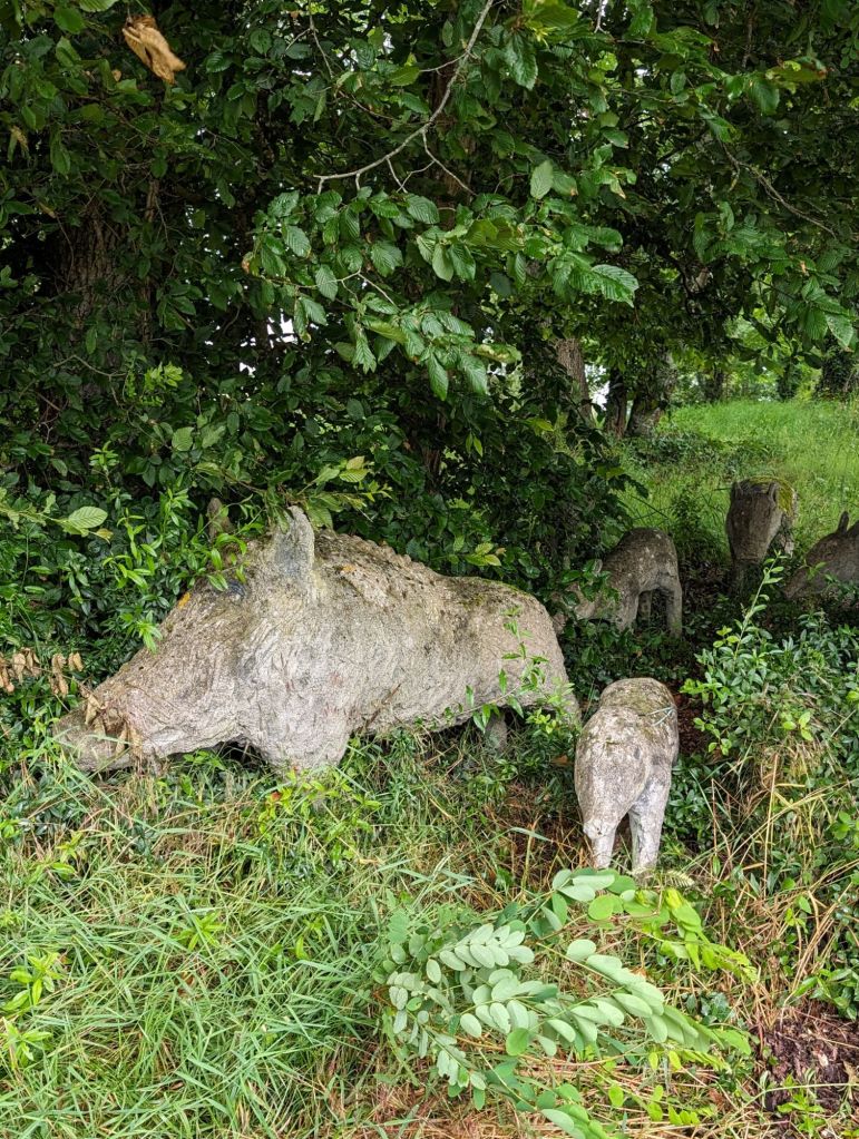 Off the beaten track, little things stand out like the little sculptures in a hedge of a family of wild boar. It was hard to see why they would have been put there as there were no obvious houses around, but they looked at home.