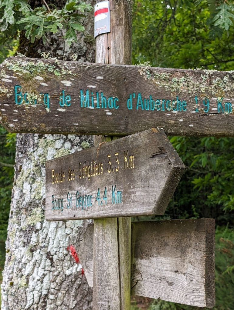 Today’s walk came about after waking to the sound of rain on the roof of the cottage we’re staying in, near Milhac d’Auberoche. We call it the ‘Hagrid House’, as it reminds us so much of the description of the house in the Harry Potter books. It’s very pretty, and sleeping in the converted attic space, you certainly know what is happening with the weather.