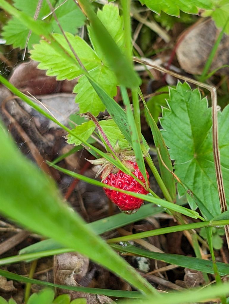 We trekked along muddy woodland paths, and waded through waist-deep grass too, where the path (unusually) hadn’t been trimmed, and then with almost perfect timing spotted a carpet of wild strawberries at the side of the path. I say perfect timing, as it was just before 2pm, we had walked over 13 kilometres and the growls from our stomachs were starting to drown out the birdsong.
