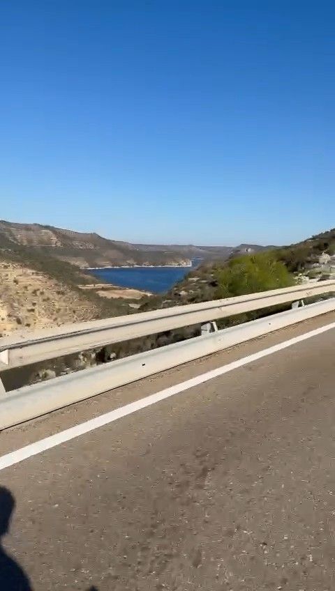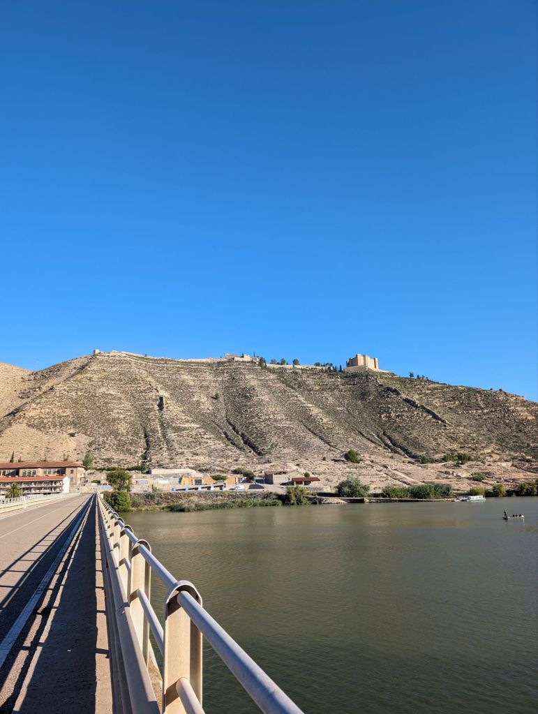 We swooped down the hill and after another little bump, dropped down through a cutting to the bridge across the Ebro at Mequinenza. The view here was stunning, a cobalt blue expanse of water dotted with fishing boats, with Herons and Vultures circling above.