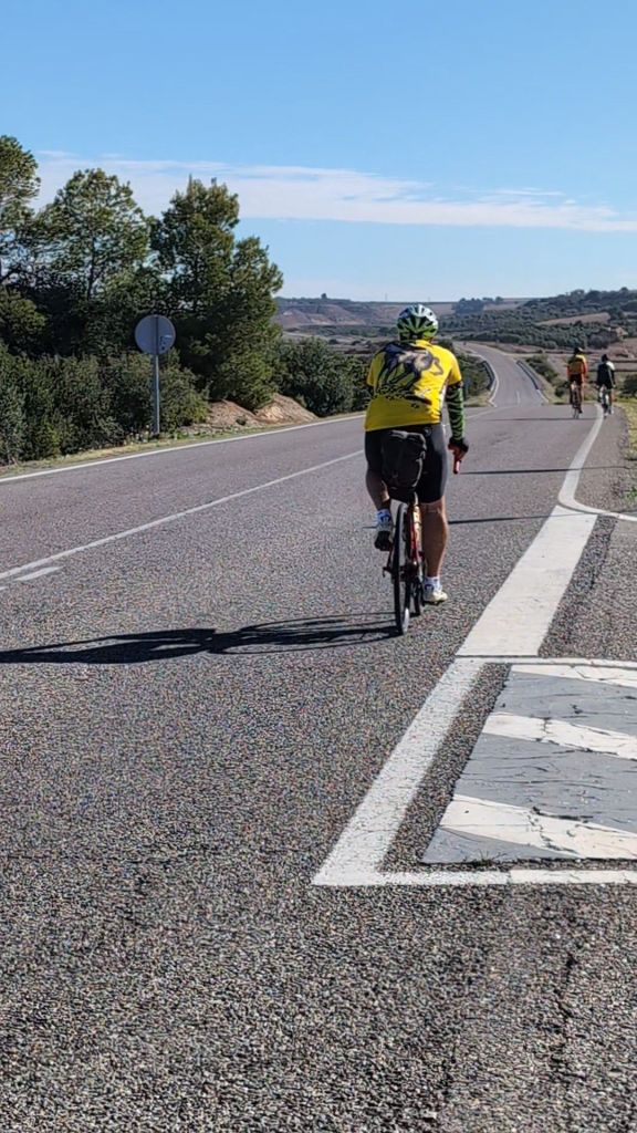 After Arbeca we found ourselves on a beautiful strip of tarmac, with far more bikes than cars and stunning views across to the Pyrenees too