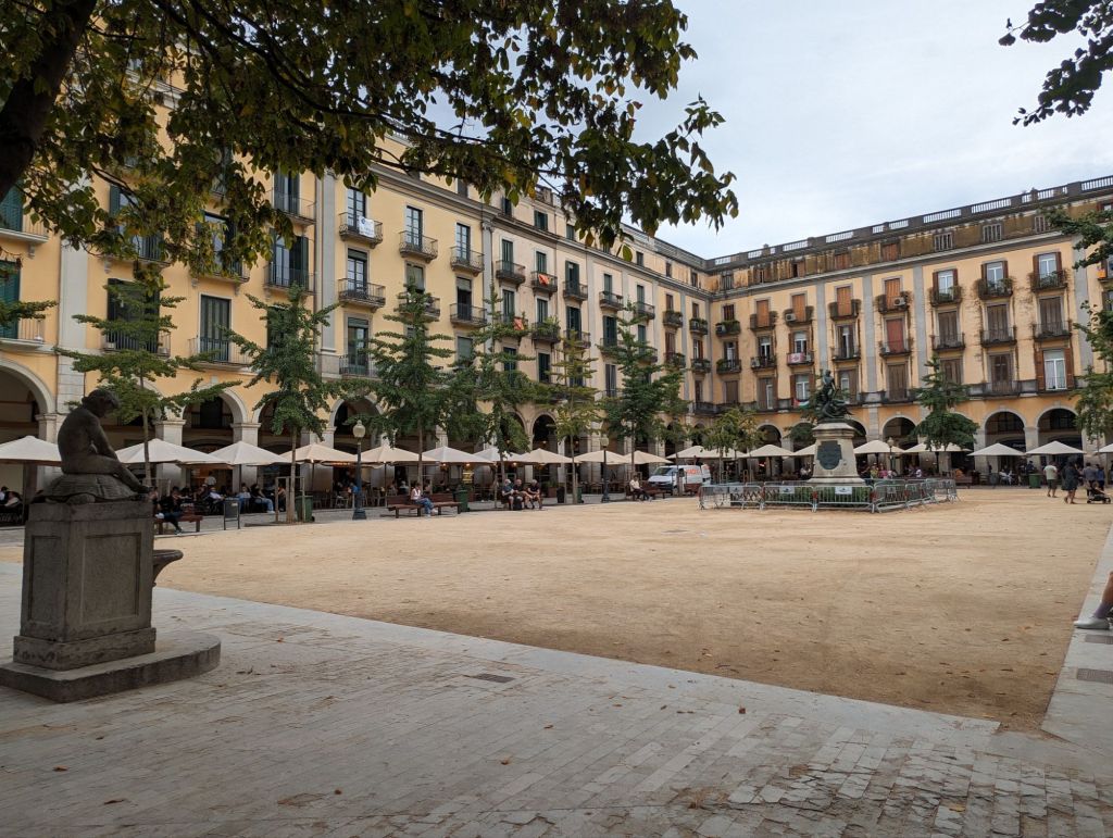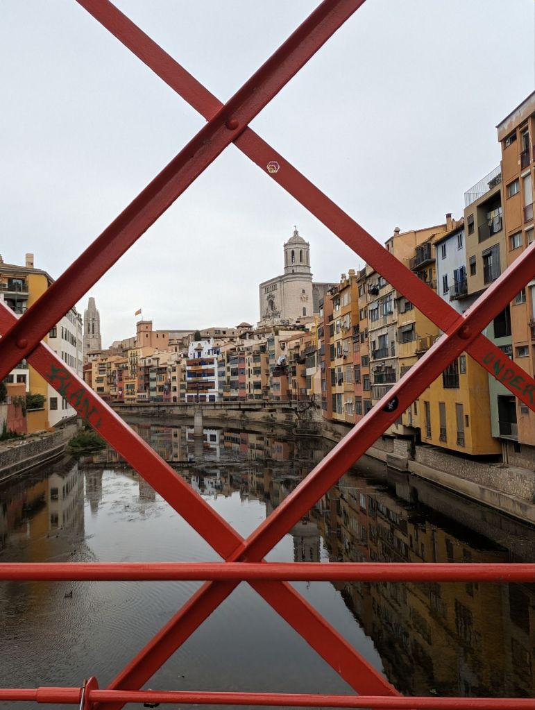 We stopped in a small village and sat on a bench, warming ourselves in the sun, before continuing on again, the road switching this way and that on its way to Girona.