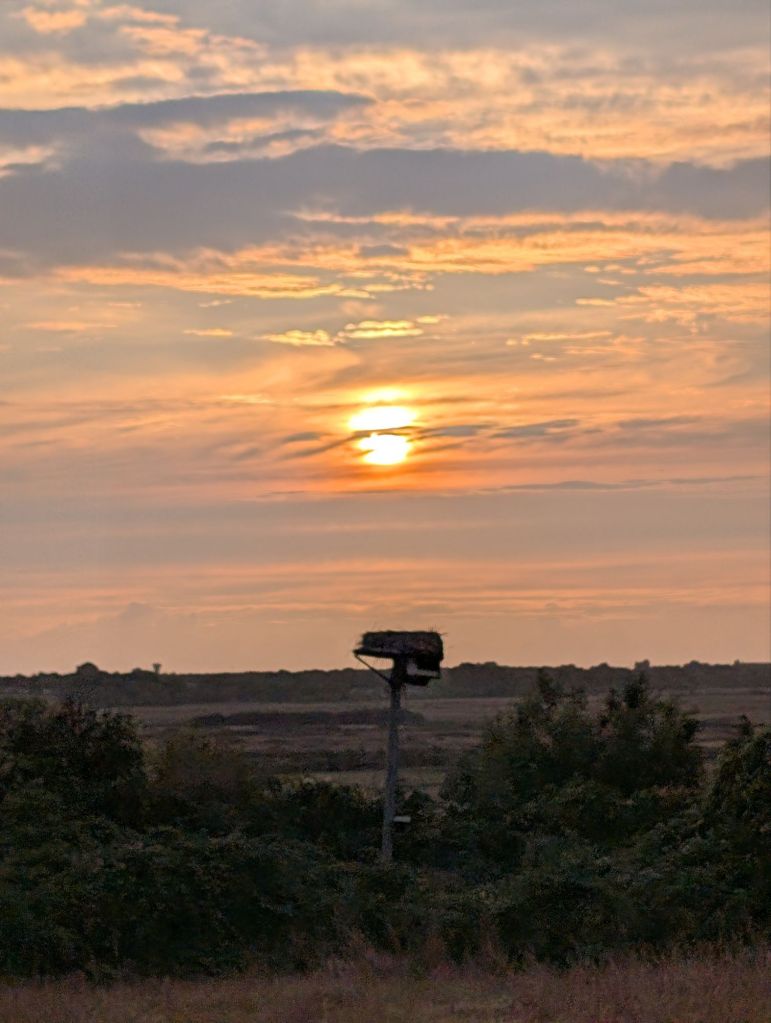 We were last there in 1999, which is a very long time ago, but this evening took the walk we used to take them, up to the Tower on a small hill above the marshes to admire the view, with the setting sun over the abandoned Stork nests, their occupants having recently started their long flight south..