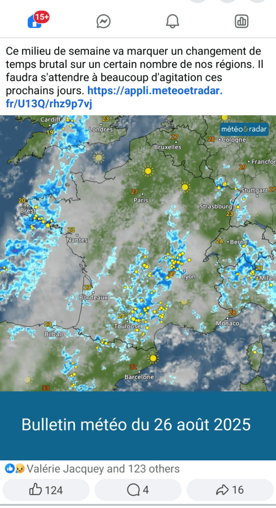 This year, we’ve hit the storms at the end of a long summer canicule (heatwave), and have had to manage our cycling (and now the route) around them. We have been lucky so far, and have only got utterly soaked once, managing to stay slightly soggy on a few other occasions, but we’ve been watching the changing forecast like hawks.