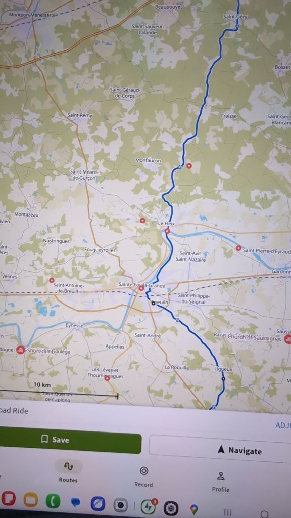 It looks as if it will be a soggy one, but I have planned a route through to Sainte Foy La Grande and on to Duras, where we have booked to stay for another 2 nights.
