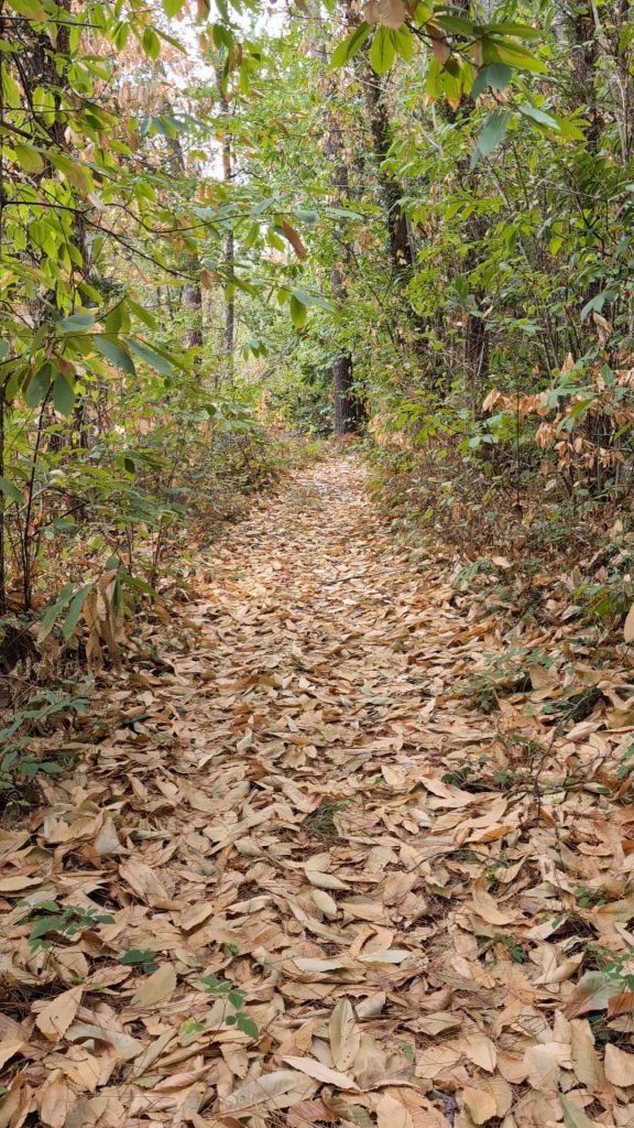 It was a lovely walk, along little backroads and forest trails covered in the falling leaves.