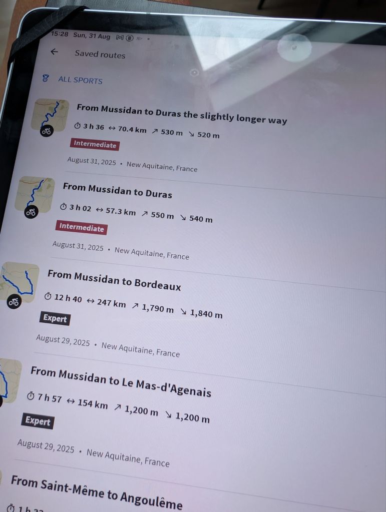 Then if all goes as we hope it does, we will camp on Wednesday night, near the start of the Roger Lapabie trail, before cycling into Bordeaux on Thursday to catch an early train on Friday morning to get back to Aix, in time for the rugby on Friday night.