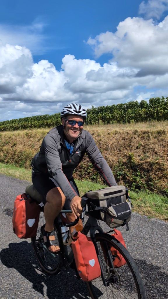 The afternoon ride was hilly, with some steep climbs, as we followed little lanes towards Duras. But it was incredibly beautiful too, and as the views opened out, we started to pedal through the extensive Bordeaux vineyards, passing different Domaines getting ready for this year’s ‘vendage’, which appears almost ready to begin.