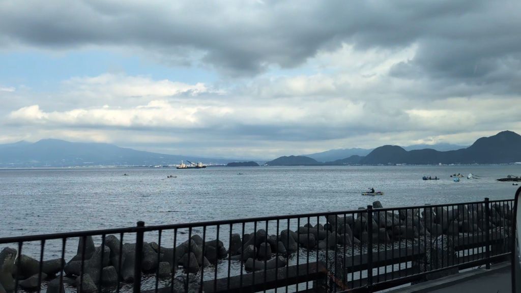 The road snaked upwards for kilometres, and just when we felt it would never end, we started to drop just as quickly back to the coast. It was a dramatic drive, but ended on a large sweeping bay, with beautiful views back across to where we knew Mount Fuji was hiding behind the clouds. On a clear day, it must be spectacular.