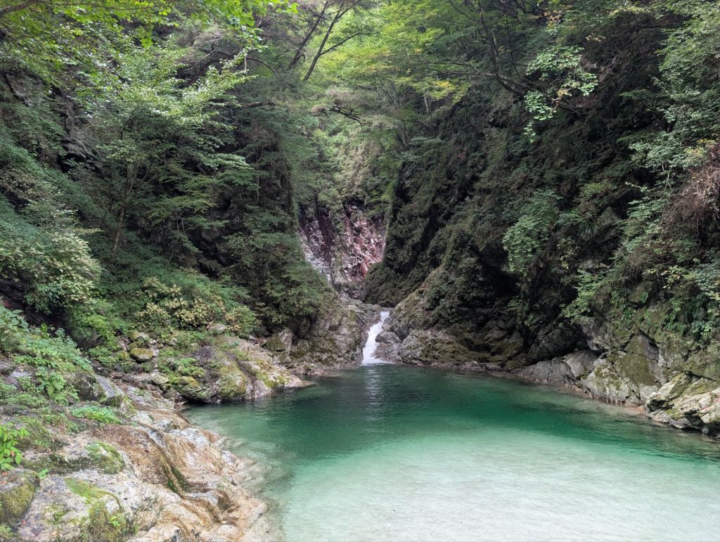 As it was, it proved to be the perfect temperature, and we left feeling clean and cool, which was rather nice. By then, we’d had enough of driving for the day, so searched for a suitable place to stop for the night, finding a parking spot at a carpark, just by the Ojiragawa Canyon, which looked rather beautiful.