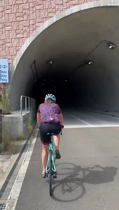 We were only passed by a couple of cars, which was a relief, as the sound they made entering the tunnel was quite overwhelming. The sound spirals in front of them, and builds, even though they may still be hundreds of metres behind us. It sounded as if we were being chased down by a huge lorry, only to be surprised when we were passed by a little Kei-car.