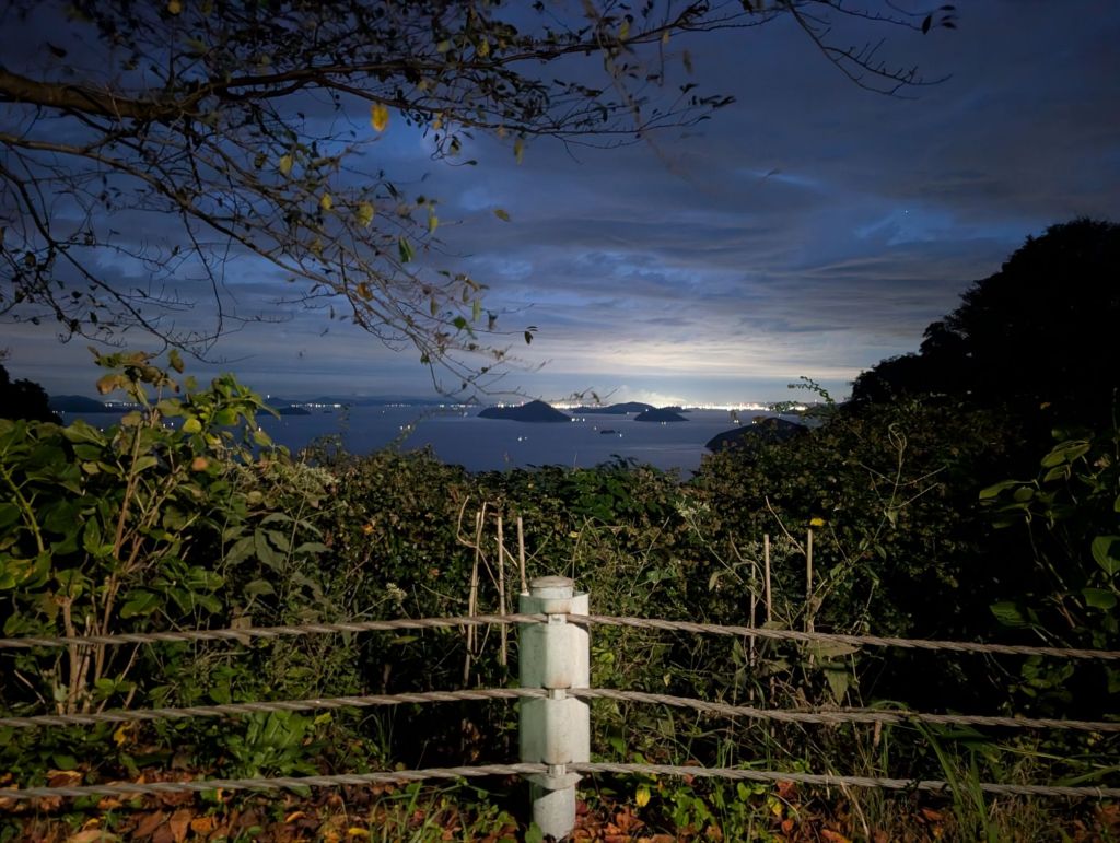 We’re so pleased that we stayed the extra night at the parking on Mount Shiube. After watching the boats disappear into the night, and the lights starting to twinkle on the horizon, we went to bed listening to the sound of the insect chatter, which sent us straight off to sleep, a little before 9pm.