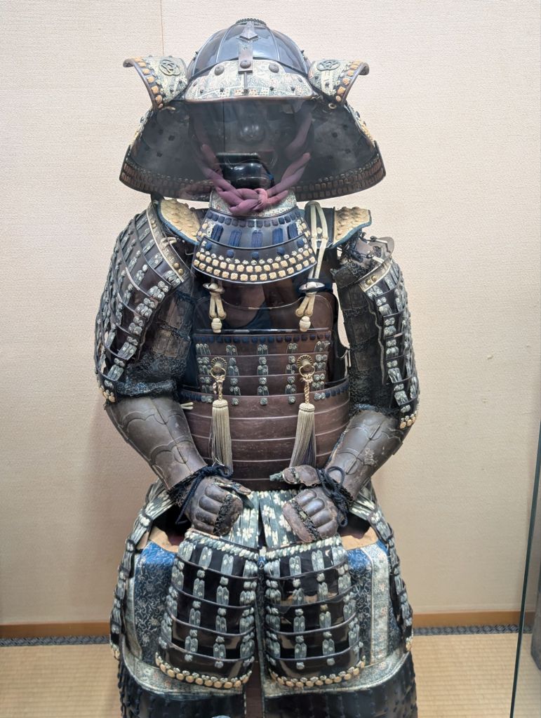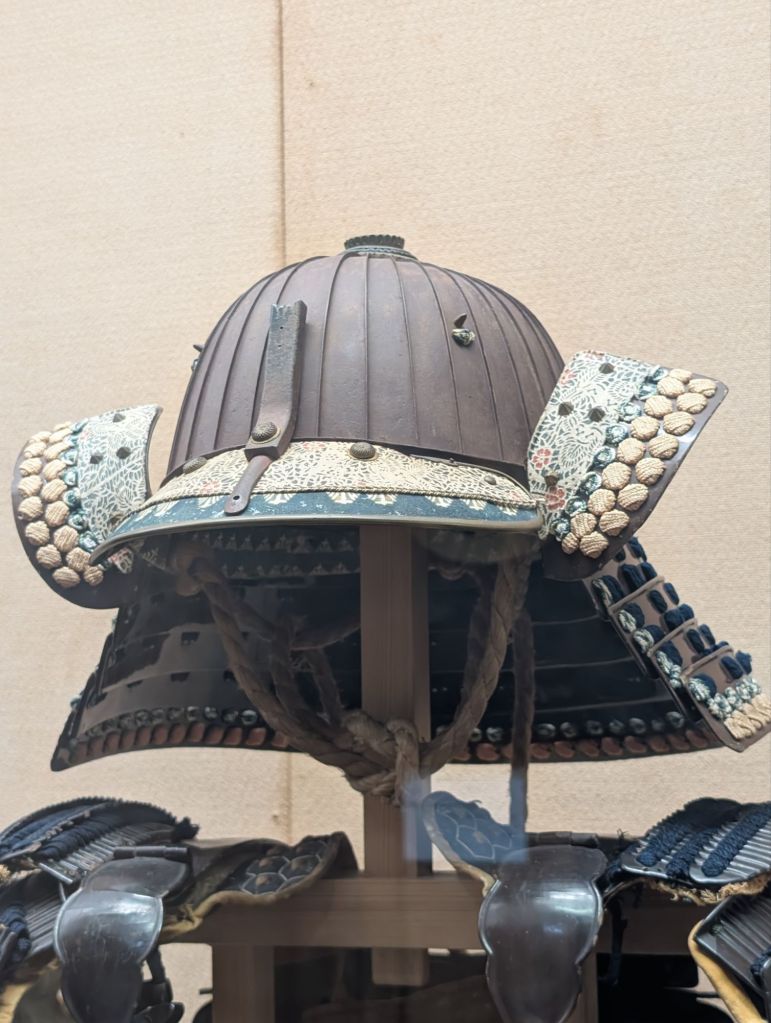 Inside, it houses a museum, which to our delight housed a good collection of original Samurai armour. The armour is exquisite, with metal protective plates, and some chainmail, held together with beautiful braided silks and delicately patterned fabrics.