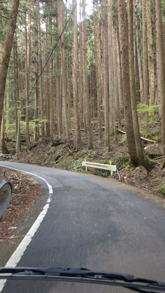 To begin with the travelling was easy, although it was along a twisting, narrow main road, with a wall of forests on one side, and a river on the other. We soon built up quite a queue of cars behind us, as this was the main road towards Matsuyama, so we pulled in regularly to let them pass.