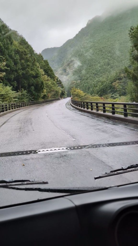 We had decided to stop at an onsen, on the way through, finding one, with open air baths that looked rather special (even in the rain). But when we reached the turning, we realised that taking the narrow slip road, in the van would not be a good move, so we followed the sign to another one instead.