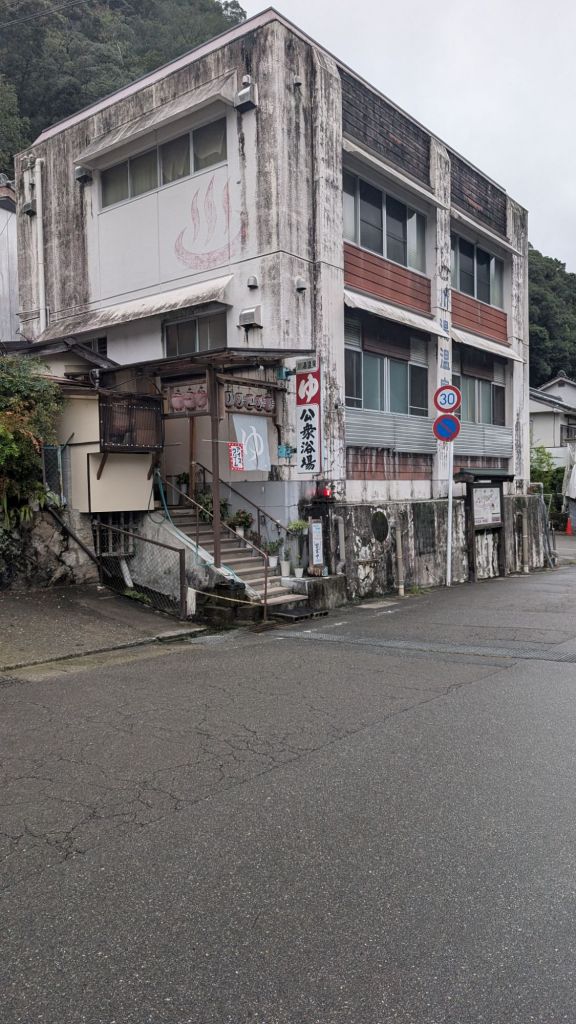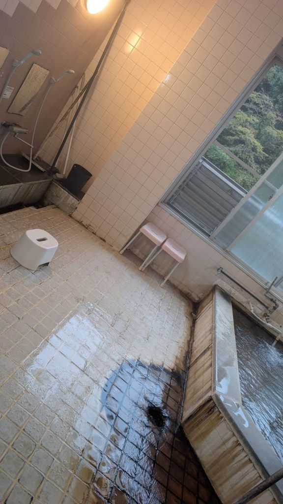 We were the only ones there, and after paying our 300 yen (£1.50) each, the lady showed us where to go. It was the first onsen we’ve used that smelt of sulphur, and it was simply being piped straight into the bath.