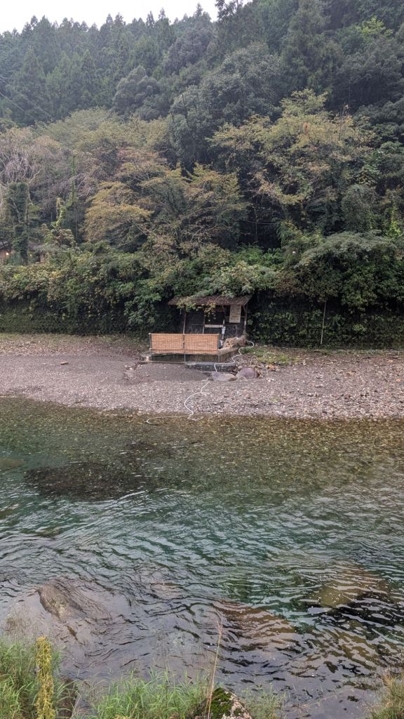 We found ourselves in a small village, running alongside a river, where there were little open-air pools dug into the riverbed, where the hot water was bubbling up from underground. They looked rather nice, but we weren’t confident to walk over and join the couple who were already in it, so went to the little onsen instead.